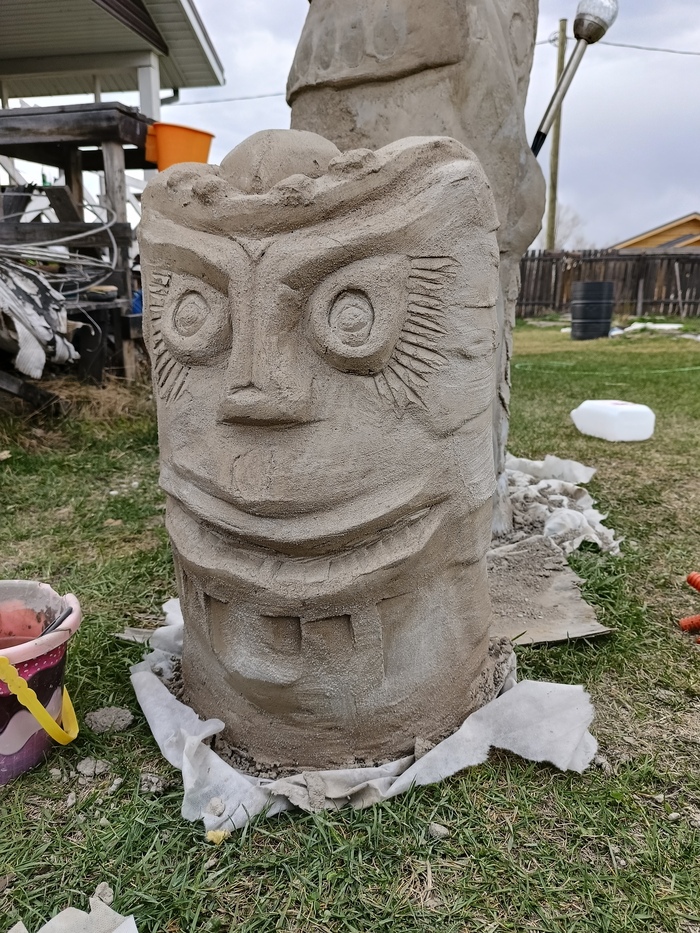 Погодка хорошая выдалась, три дня, три фигуры. Самая большая пустая внутри, у маленьких пена наполнитель, обычный бетон, не арт и не по супер секретным рецептам, все на глаз. Мопс самурай, балбес, и светильщик