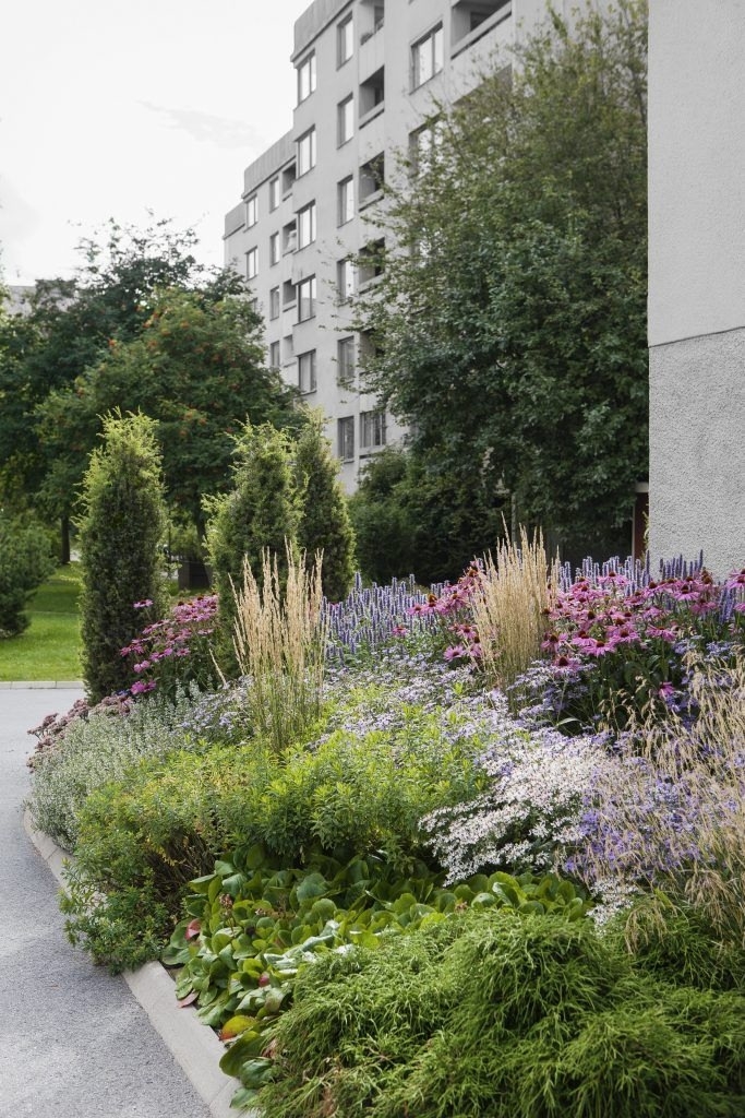 Дворы многоквартирных домов ухоженные. Клумбы обслуживают садовники, но и сами жильцы с удовольствием участвуют в озеленении и украшении своих дворов.