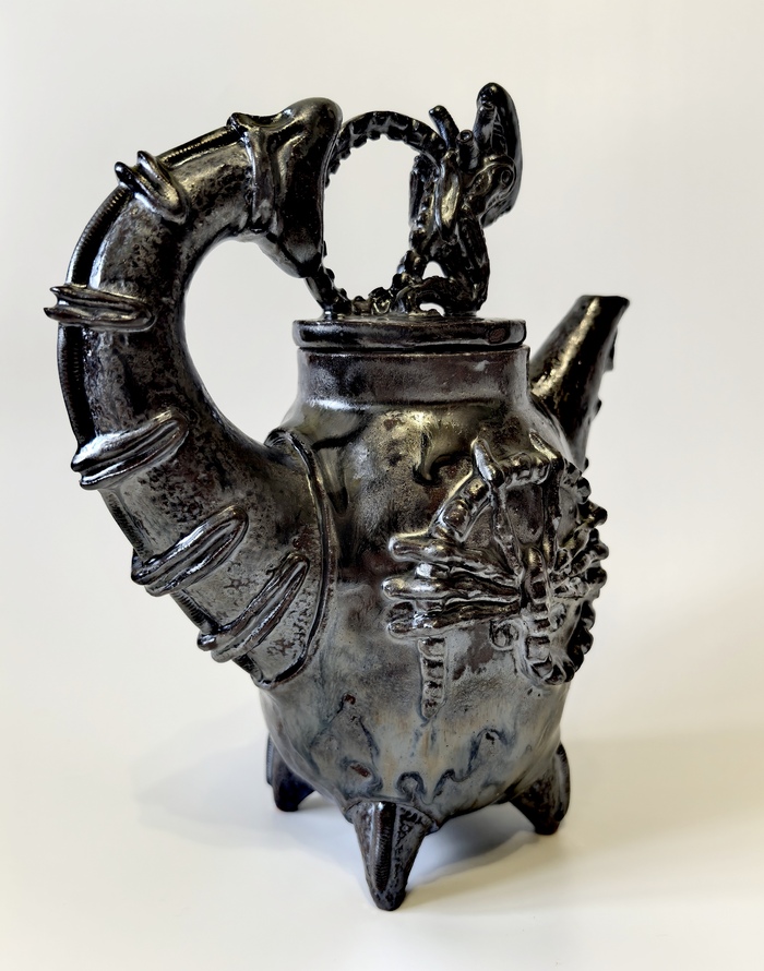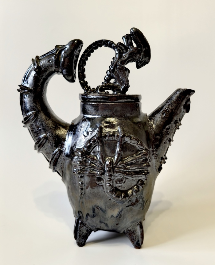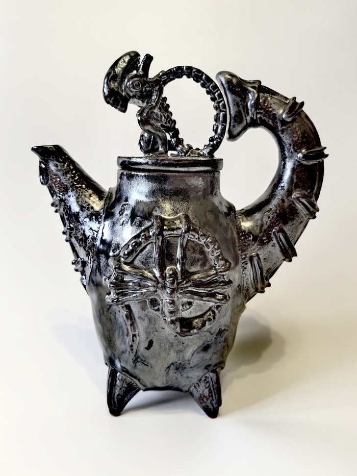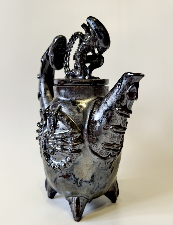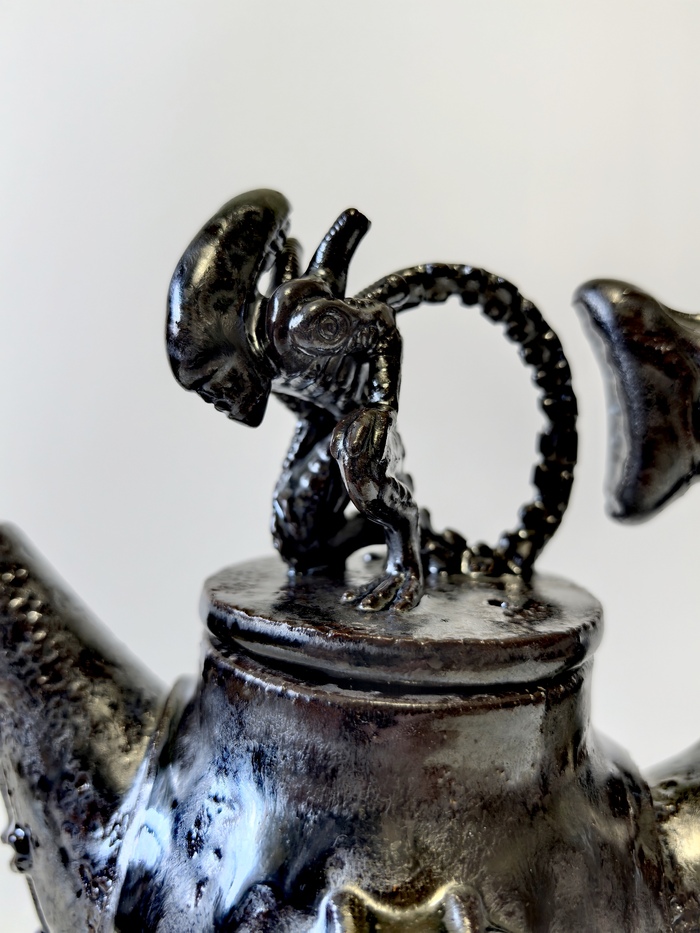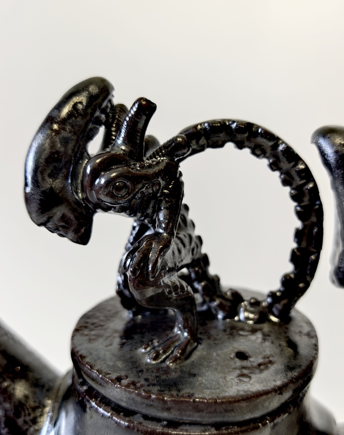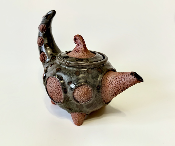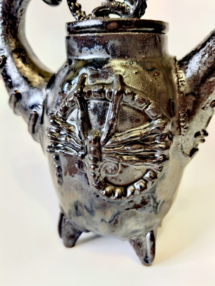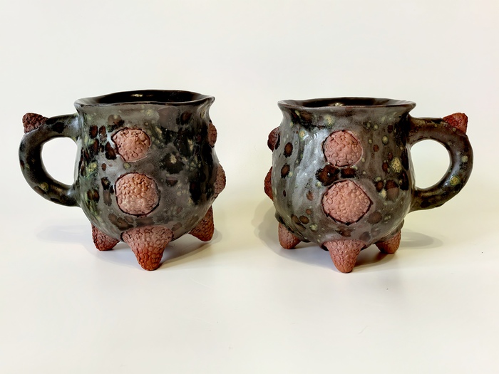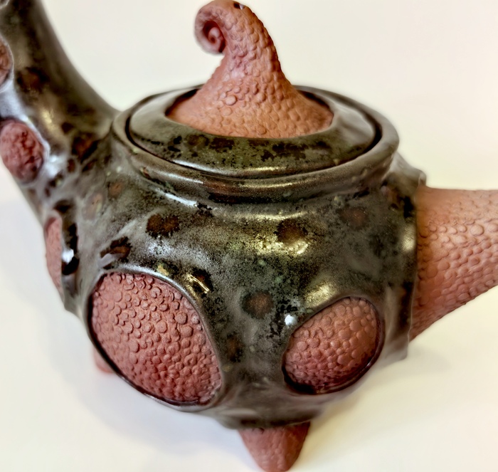 История с этим отскоком крайне странная. Сперва для понимания чуть подробней об этом явлении. Отскок - это когда черепок скажем так "отталкивает" глазурь с поверхности в ходе обжига и это мест после обжига остаётся непокрытым глазурью. Иногда это просто непокрытый маленький участок остаётся, а иногда, как в этом случае, глазурь будто заворачивается и в таком состоянии обжигается, что даёт ещё и выпуклость в этом месте.