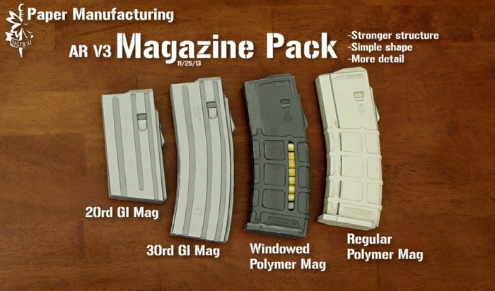 Магазин был неотъёмным, барабанного типа, рассчитанным на 10 патронов. Зарядка магазина осуществлялась через окно на правой стороне оружия, расположенное под окном для выброса гильз. Для снаряжения использовались пластинчатые обоймы на 5 патронов от винтовки Springfield M1903. Зарядка могла производиться как при открытом, так и при закрытом затворе.