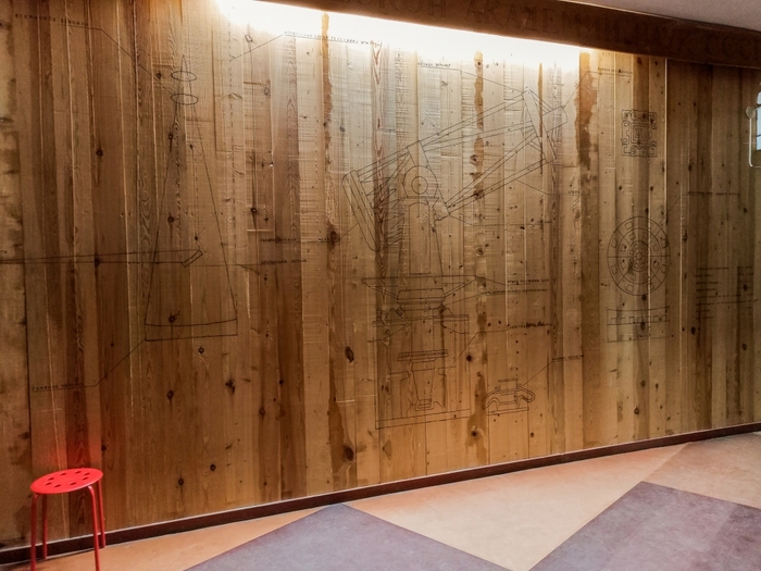 На втором этаже находится множество банеров с астрофотографиями и описаниями объектов или процессов отображенных на них. Так же на стене вручную изображены схемы телескопа