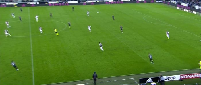 Гонсало перекроет линию для отыгрыша левоцентральному защитнику, Бернардески накрывает опорника, играющего ближе к этому флангу, Куадрадо готов встречать Сансоне (№10). На самого Крейчи (№11) уже начал выдвигаться Хедира. ЛЗ «Болоньи» в цейтноте. Через секунду ловушка захлопнется