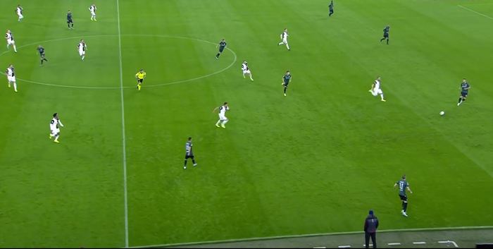 И Бонуччи, и де Лигт обладают прекрасным пасом на любое расстояние. Михайлович не мог не знать об этом, и не мог не напомнить своим игрокам об этом, но молодой вингер не справился. Нагляднее это смотрится в динамике (размер гифки не пускает, просьба переходить по ссылке):