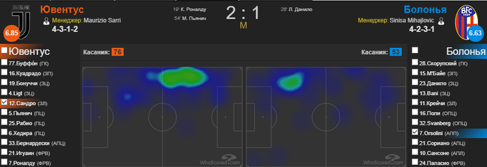 По одной только тепловой карте видно, насколько серьёзно недорабатывает Орсолини за прямым оппонентом