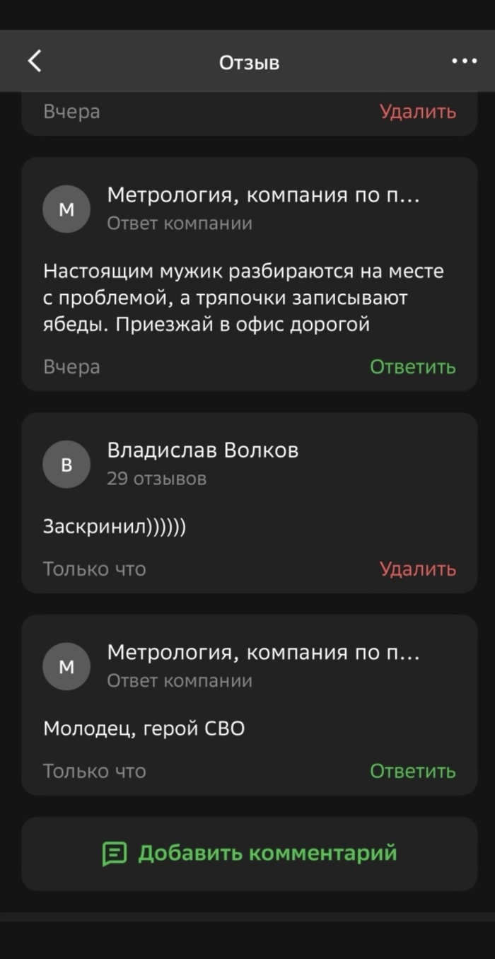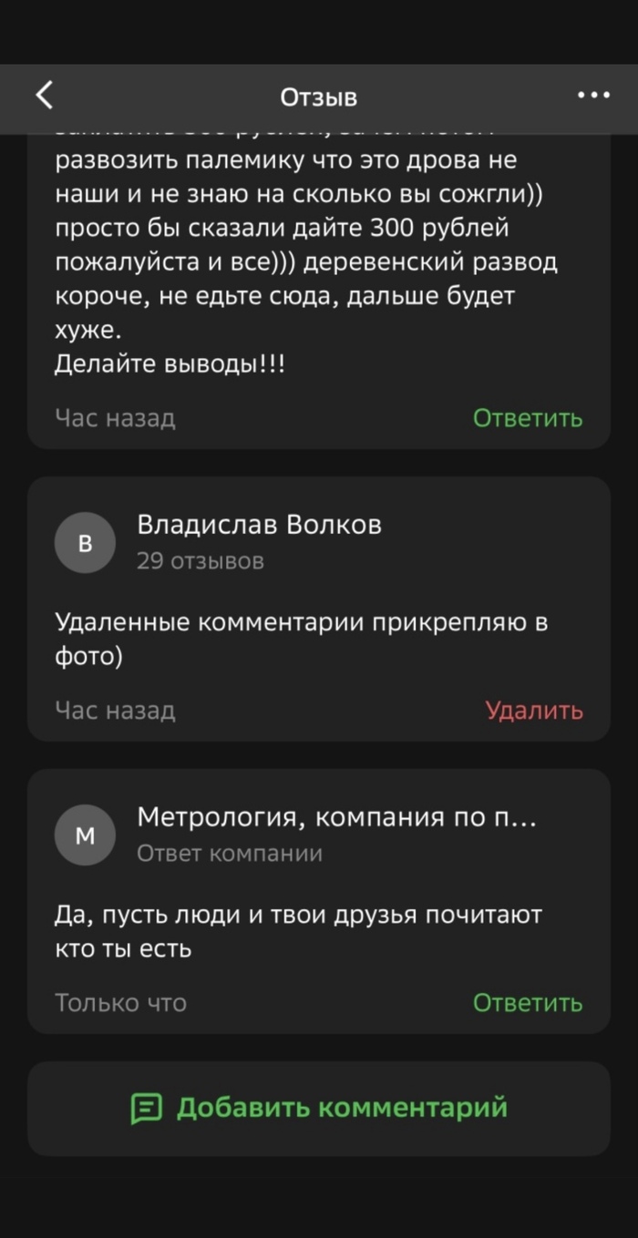 Написал я злостный отзыв в 2ГИС и тут понеслась, со стороны ИП начались угрозы оскорбления и тд и тп) прям в комментариях к отзыву)) 2ГИС вместо того что бы наказать ИП начали спрашивать с меня чеки и другие подтверждения) в общем ипопея в отзыве длилась целый год и модератор просто удалил этот отзыв так как услуга получена более года назад))