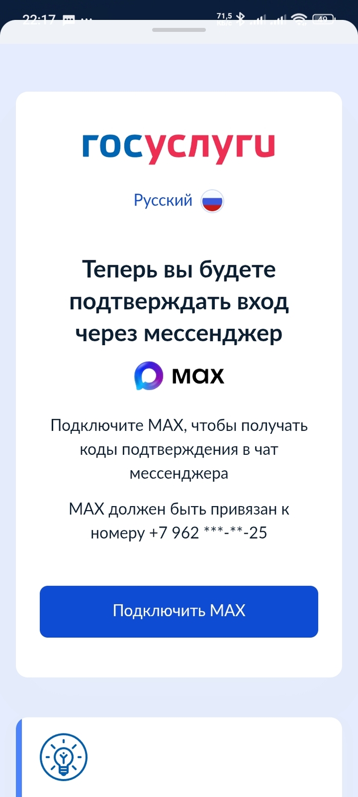 Благодарю "солнечных" которые продвигают #max таким агрессивным способом. Теперь нет возможности войти в приложение Налоги ФЛ с подтверждением входа через Госуслуги.