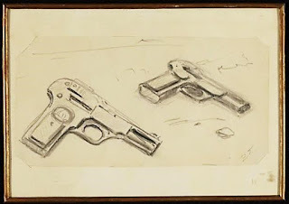 Далее. Известный русский художник В. Н. Пчёлин [59] после смерти вождя пролетариата в 1924 году задумал написать картину «Покушение на Ленина». Правительство большевиков поддержало его идею и оказало ему содействие, предоставив все необходимые материалы. Результатом его предварительной работы над картиной стал эскиз пистолета, из которого стреляли в Ленина. Хорошо просматриваются характерные детали оружия покушения, бесспорно указывающие на то, что художник рисовал с оригинала. Эскиз датируется 1925 годом. Следовательно, в это период времени пистолет существовал, и В. Н. Пчёлин его видел.
