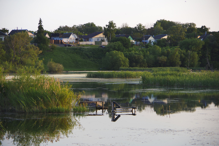 Приезжаю сюда в гости к родственникам в начале лета, стараюсь каждый год. На первом фото вид на улицу набережная. Внизу водоём, бывшее русло реки.
