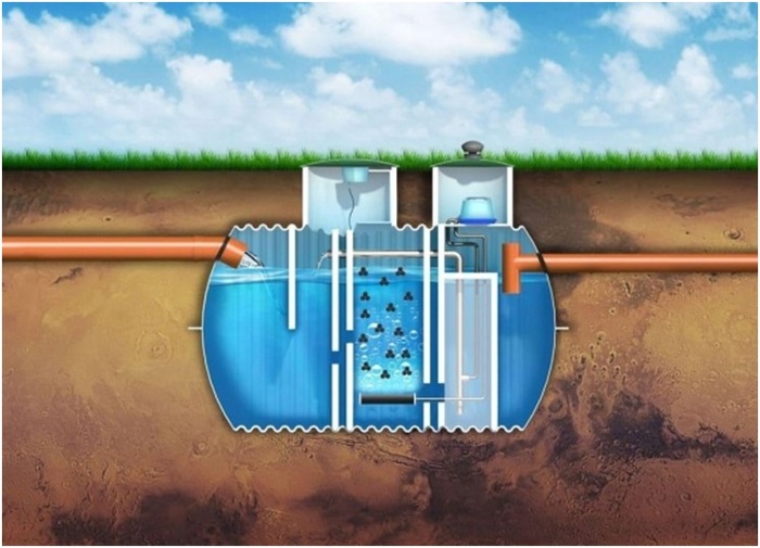 Вторая камера — аэротенк. В ней устанавливается аэратор, который нагнетает в воду кислород. Кислородные (аэробные) бактерии на порядок более активные и веселые. Жизнь в аэрационной камере кипит и бурлит в прямом смысле слова. Аэробы — вечно голодные и готовы переработать любое количество фекалий, которое сможет произвести хозяин коттеджа. Помимо этого, аэробные бактерии в процессе жизнедеятельности выделяют азот и углекислый газ, которые не имеют запаха. Т. е. после прохождения аэротенка канализационные стоки становятся прозрачными и не имеют запаха. Бинго! Кажется, ответ на вопрос, какой септик лучше, — найден!