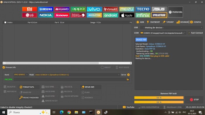 Очень нужен совет. Сброс FRP на android через UnlockTool
