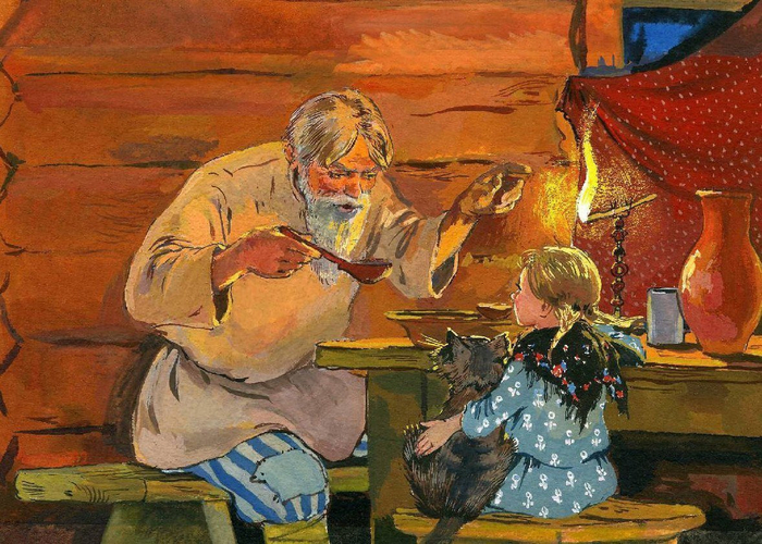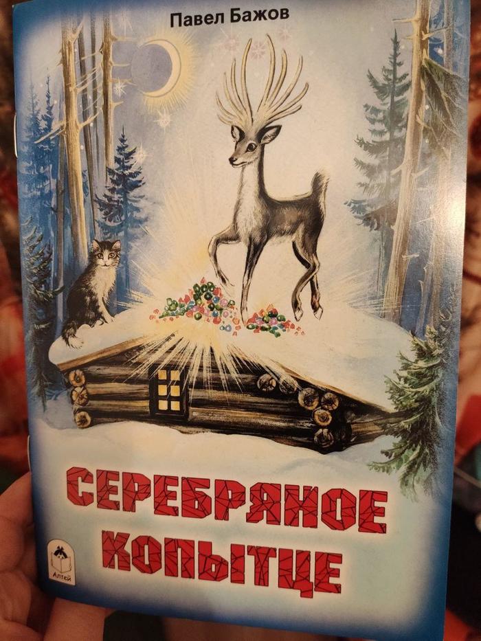 Ребёнку в саду подарили книгу Бажова "Серебряное копытце". Ту самую, классическую про старика Кокованю, Дарёнку, кошку Мурёнку,да волшебного козлика.