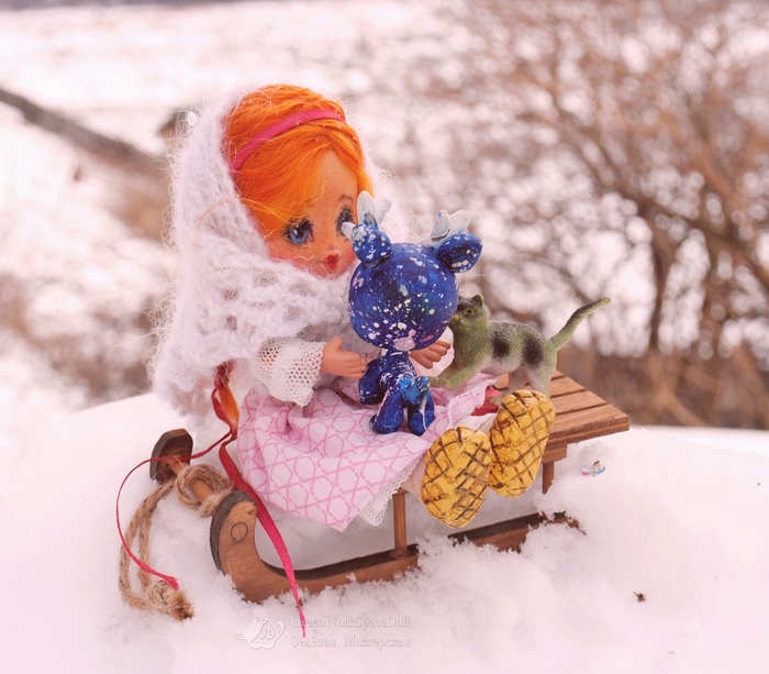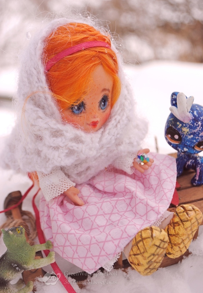❄О создании: Девочка сделана на базе братс кидс. Удалены фабричные волосы и вызывающий макияж. Был изготовлен паричок, долеплены ножки, сшит съемный аутфит, выполнены шарниры в локтях. Серебряное копытце - работа моей сестры. Слеплен из полимерки