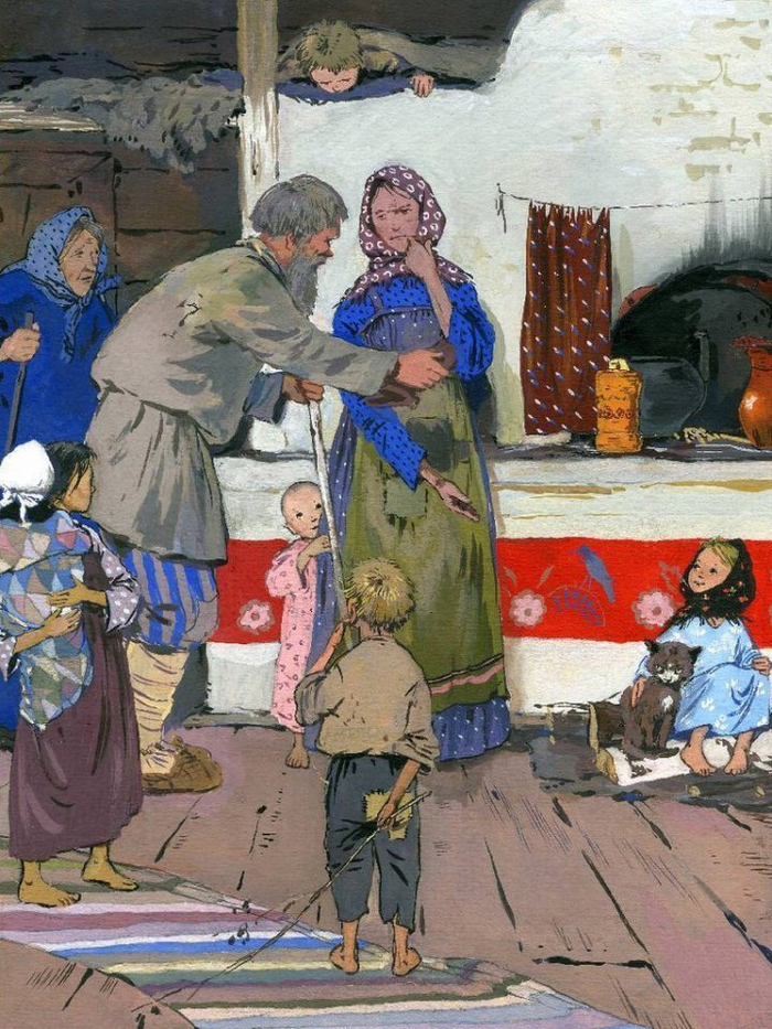 После данного инцидента ушла из дому странница, оставив Танюшке на память только маленькую пуговку. Коль что по делу нужно будет узнать или нужда придёт - посмотрит Таня в пуговку, ей и ответ будет. С того самого дня и прославилась девушка как мастерица. Слух о её творениях и умениях аж до барина дошёл. Посылал тот к Танюшке своих слуг, да ничего толком и не добился. А Танюшка и вовсе была занята только работой, ни друзей не имела, и женихов, обмозоливших глаза у её окна, жёстко отвергала, за что соседи часто корили её мать Настасью.