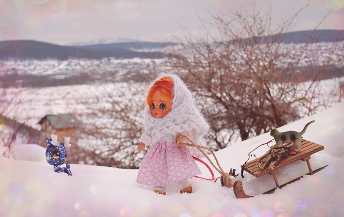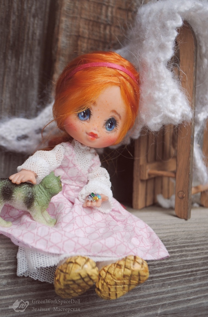 ❄Описание: Маленькая девочка-сиротка, которую взял к себе на воспитание дед охотник. Внешне особо не описана. простая девчушка, как и все, поэтому я сама выбрала рыжие волосы и веснушки)) Одета соответственно в простую деревенскую одежду. Трудолюбивая, благодарная, любопытная девчушка. Очень мечтала увидеть Серебряное копытце- волшебного козлика-оленя, которого всюду ищет дед. И ее мечта исполнилась)) Её лучший друг очень умная кошка Мурёнка, всегда и везде сопровождающая Дарёнку