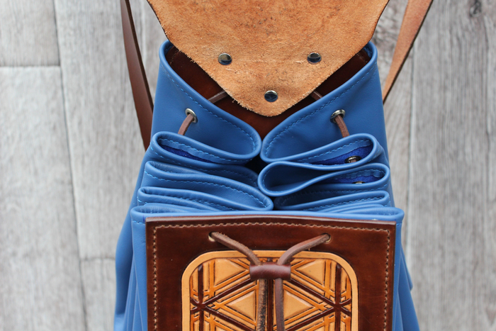 Рюкзак выполнен из натуральной кожи растительного дубления(толщиной 3мм) и наппы(мягкой овчины толщиной1мм).