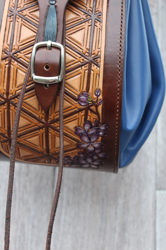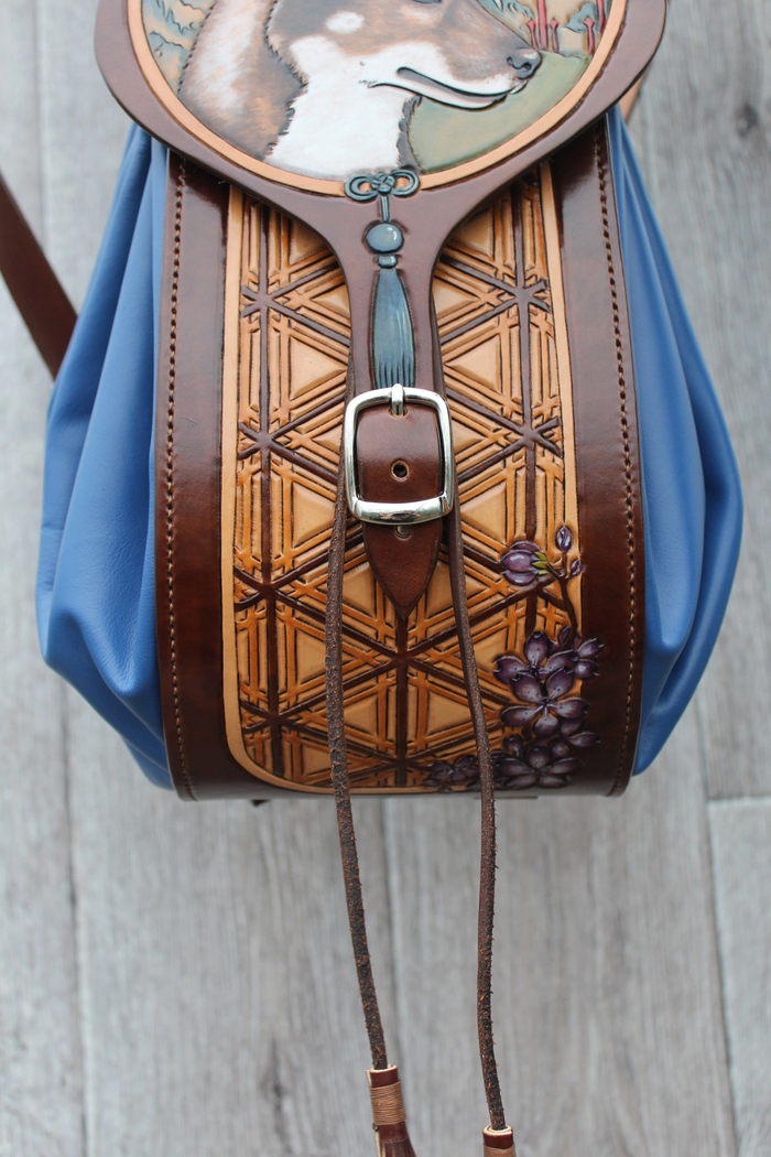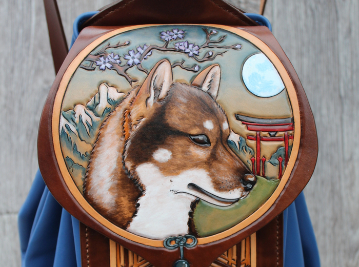 Авторский дизайн, рисунок выполнен вручную, тиснение в технике карвинг. Покраска и тонировка кожи выполнены вручную профессиональными красками для кожи. Прошивка плетеной вощеной нитью седельным швом. Абсолютно все, от эскиза до последнего стежка выполнено полностью вручную.