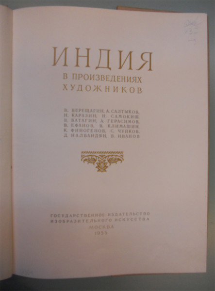 Книжка, где была иллюстрация Верещагина - "Индия в произведениях художников", Государственное издательство Изобразительного искусства. Москва. 1955 год