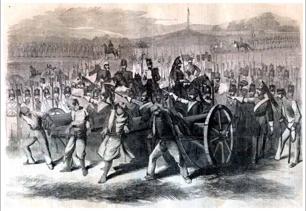 Казнь из пушек, ещё называемая "дьявольский ветер" в Бомбее. 11.28.1857 Иллюстрированные лондоские новости