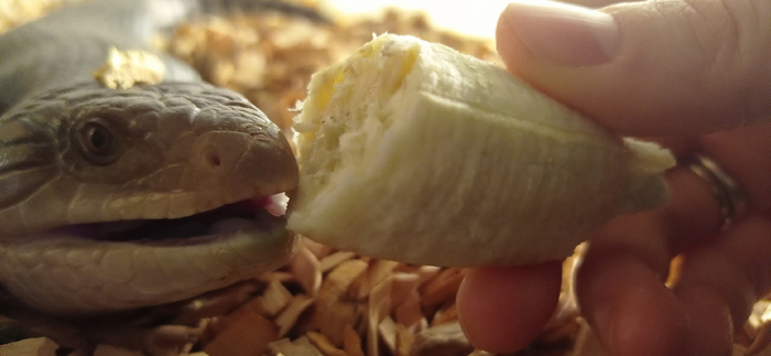 Ответ на эту дилемму приехал к нам в коробочке из-под майонеза. Tiliqua scincoides Intermedia, северный синеязыкий сцинк. А ещё сцинка называют «Обыкновенной исполинской ящерицей». Ну, реально, что тут необычного, подумаешь!