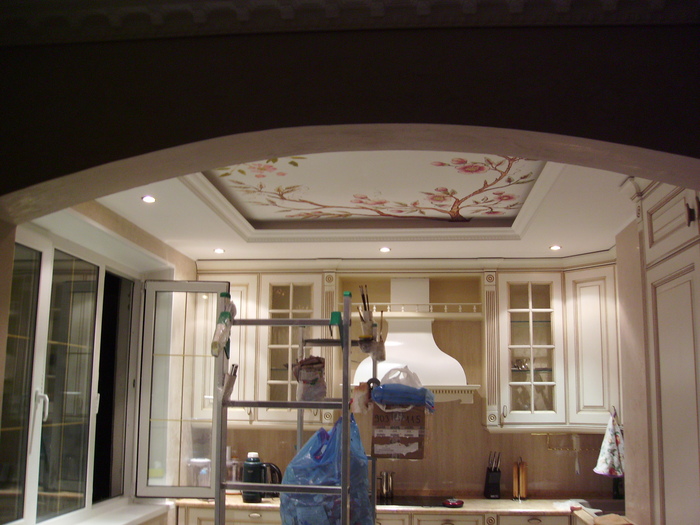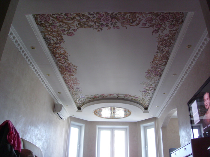 Это другая, "ампирная" сторона потолка, так как здесь эклектика - модерн сочетается с ампиром.