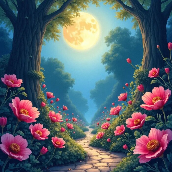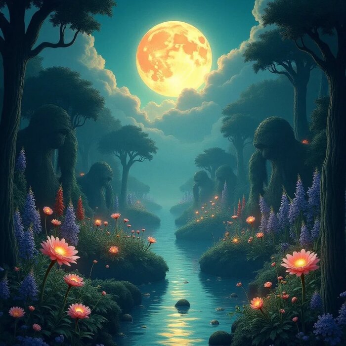 Из озера вытекал ручей, который прятался среди зарослей бамбука. С трех других сторон поляну окружал высокий дремучий лес. Широколистные утуны (деревья из семейства платановых) охраняли ее покой. Ранней весною повсюду расцветали луговые цветы, следом за ними ― орхидеи. Гордые хризантемы появлялись осенью посреди вечнозелёных кустов мусихуа. Белые душистые цветы мусихуа к этому времени уже опадали. Точно так же, как вскоре опадали и цветы чудесных орхидей.