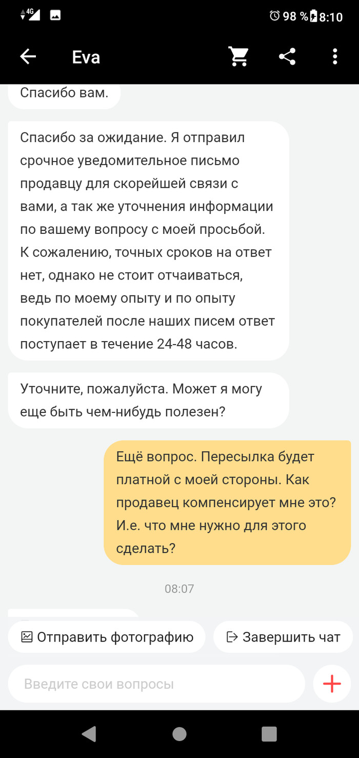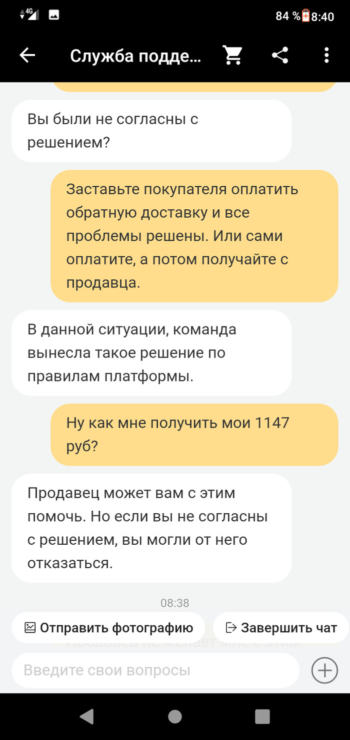 Открываю спор с возвратом некачественного товара. Спрашиваю у АлиЭкспресс, кто мне компенсирует возврат - оператор ответил, что продавец. И вот я возвращаю товар в Китай за свои кровные 1 147 рублей. Продавец морозится и не подтверждает получение. АлиЭкспресс тянет почти 2,5 месяца с решением по спору. 20 августа принято решение о возврате стоимости покупки. Ну почти ура. Спрашиваю у службы поддержки кто компенсацию возврата, товар-то некачественный - оператор отвечает да-да, сейчас напишем продавцу, он оплатит.