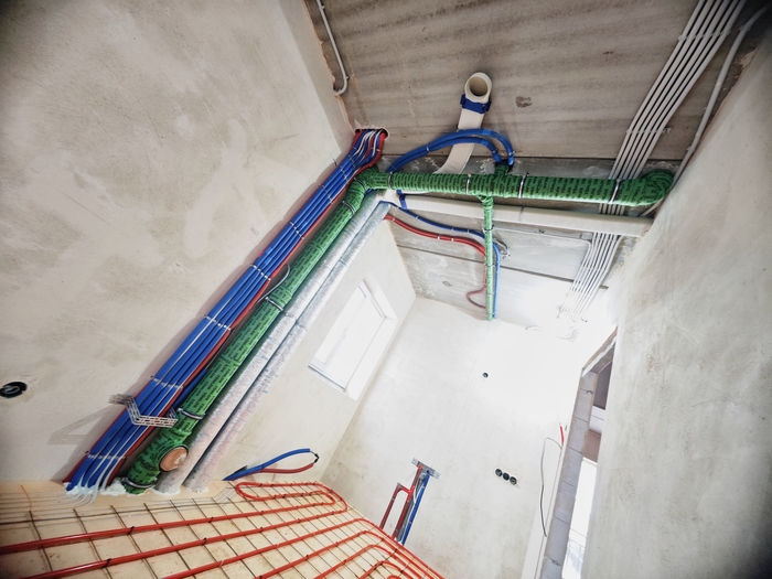 В трехэтажном таунхаусе площадью 128кв.м. выполнен монтаж внутренних систем: