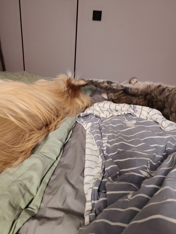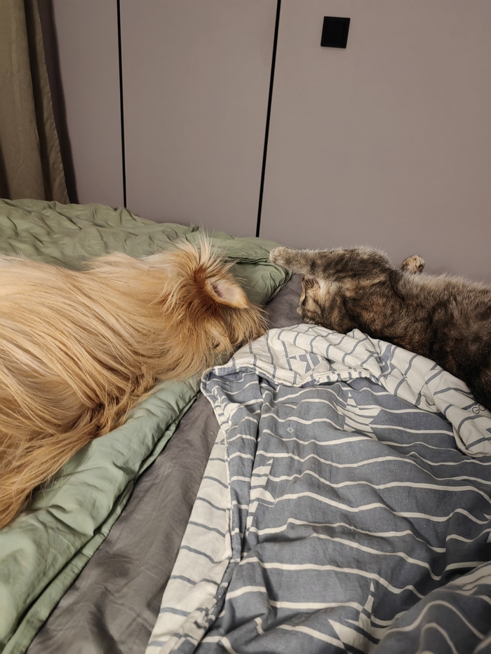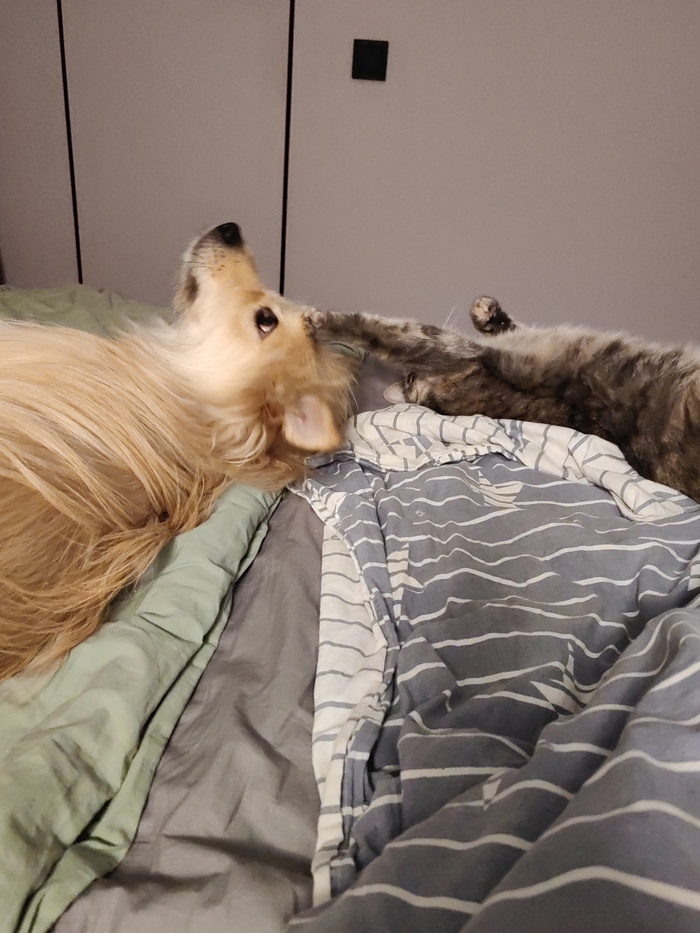 Получилась серия фотографий. Самая подходящая под описание как раз последняя. Они так мило общаются друг с другом.) Играют, отдыхают. Всё вместе.
