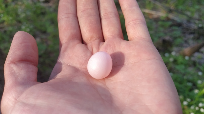 Нашла яйцо неизвестной птахи. Может, есть идеи, чьё? Скорлупка светло-розовая, около 17мм в длину.