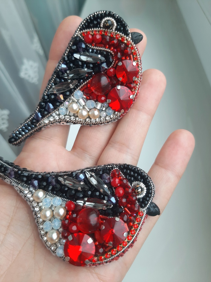 Брошь "Снегирь" из бисера
