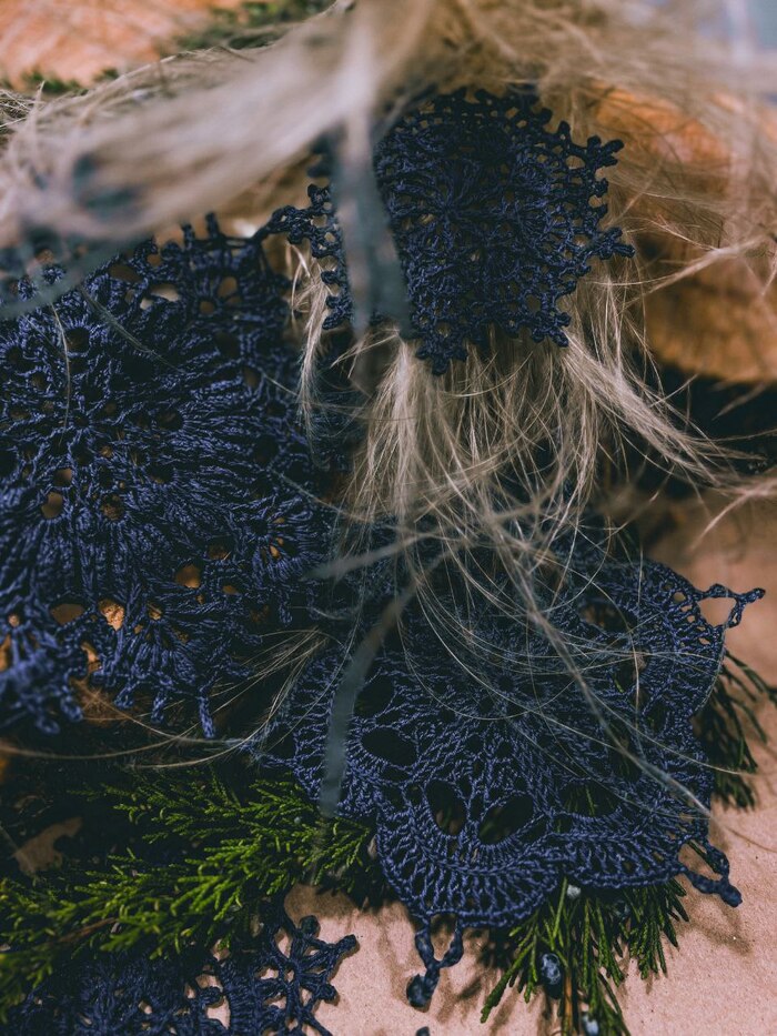 С синими снежинками как будто часть коня в кадре. Но это перья