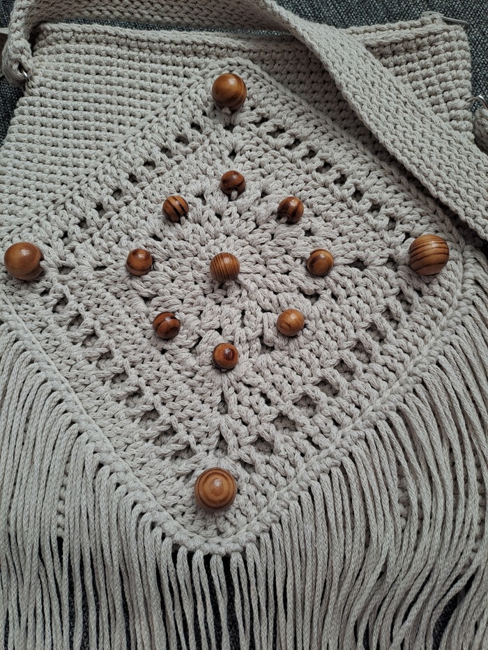 Вязала как и в первый раз из хлопкового шнура 2мм, крючок #5, молния и деревянные бусины. Все схемы и видео по вязанию и оформлению можно найти бесплатно, в открытом доступе в интернете. Вяжите, радуйте себя и близких!