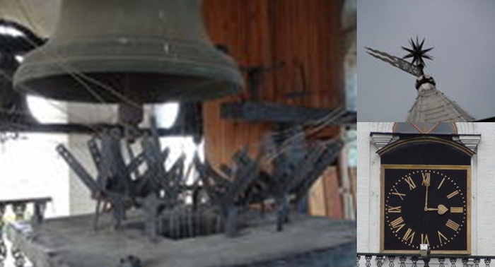 Ой, много всяких чудес там на башне то было. На самом пике вертушка, ну, чтобы знать куда ветер дует. А еще громоотвод по форме солнца стоял, такого громоотвода да же у английской королевы не было, а у нас был! защищал город от ударов грозы, все на себя принимал. Люди то в грозу уж спокойно по домам сидели, пожаров не боялись больше.