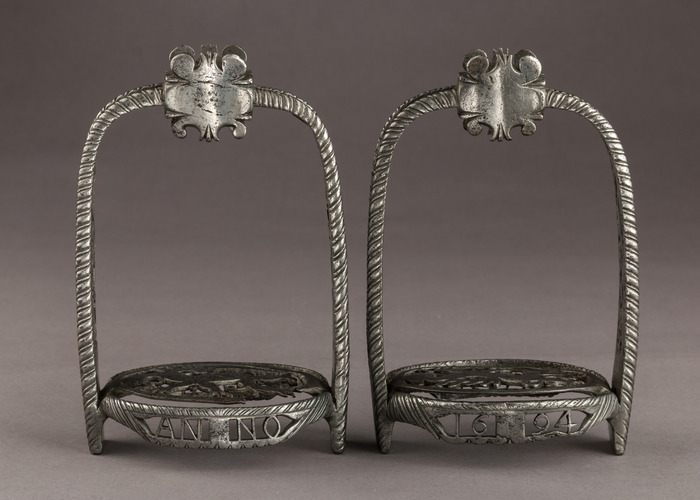 Пара стремян, 1694 год, Германия, возможно Саксония. Материал: сплав железа. Вес 680.4 г и 677,6 г.