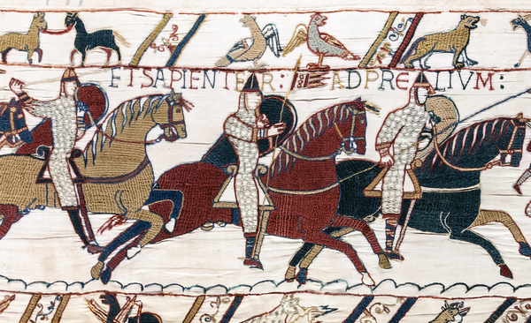 рыцари в битве при Гастингсе против англосаксонской армии короля Гарольда (14 октября 1066 года).