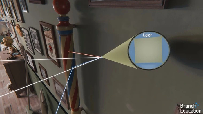 Базовый цвет точки формируется с помощью нескольких лучей, которые попадают рядом с центральным — для этого все их цвета усредняются. Подобные лучи называются первичными.