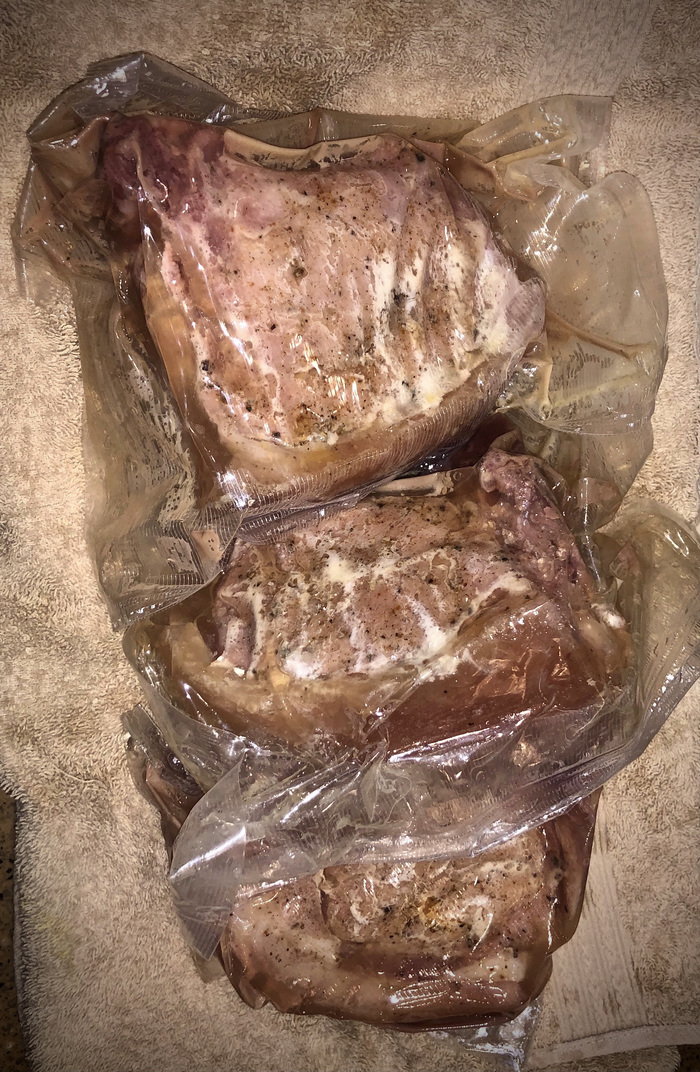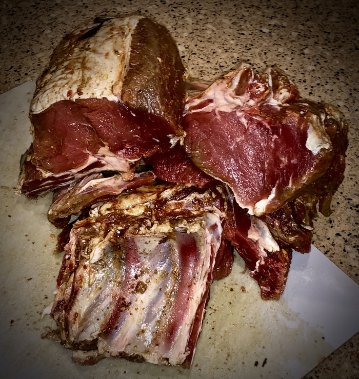 По поводу эксперимента: пост и так вышел длинным, поэтому если вас интересует, что же и как у меня получилось, пишите в комментах, увижу интерес - продолжу тему. А ещё в планах есть на ближайшее время накрутить сосисок для моих дегустаторов, возможно докторскую колбасу, адыгейский сыр. И ещё - я же купил вакууматор, а это значит, что я буду ставить стейки на созревание! Если интересует тема стейков, тоже пишите в комменты. Засим благодарю за внимание, ну а ниже вас ждёт краткий рецепт из поста.
