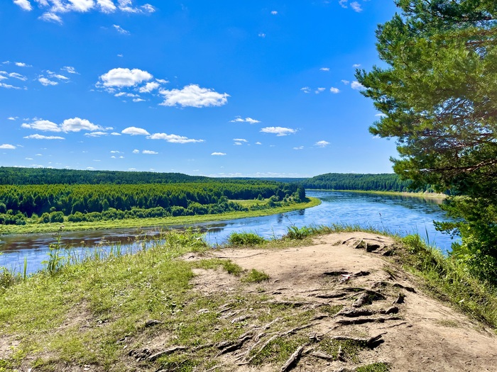 Погода приехала вместе с нами, вчера все ходили в куртках, сегодня ярко светило солнце и было жарко даже в футболке. Пейзажи смешанного леса вперемешку с некоторым количеством заливных лугов на низких берегах кричали - Чуваки, путешествие началось!! Погнали!