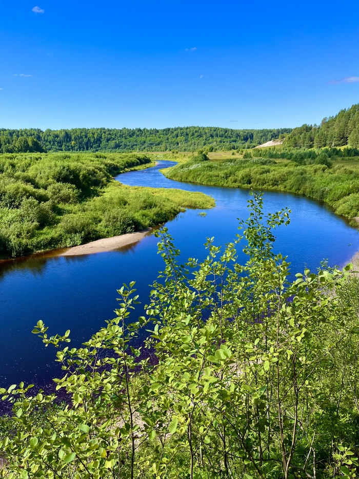 Сейчас река разлилась метров на 70-100, течение практически исчезло, часто стали появляться деревни. Совсем близко к Великому Устюгу жизнь снова закипела, машины, люди и моторные лодки. Прошли под мостом и оказались в центре города под набережной, с воды самый лучший вид на город и местные соборы. Пройдя город мы снова оказались в дикой природе. Встали на песчаном пляже. В этом месте воды реки Сухоны смешиваются с водами реки Юг и образуют реку Северная Двина. Тут мы и закончим наш маршрут искупавшись в трёх реках сразу. Вечером развели костёр и начали отмечать успешное завершение путешествия пиццей!