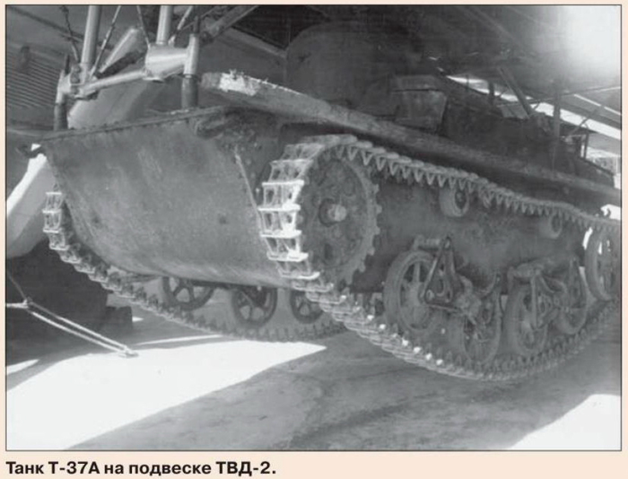 В октябре 1936 года Научно-испытательный институт ВВС РККА провел испытания подвески ТВД-2 в районе Медвежьих озер (Московская область). При этом был задействован бомбардировщик ТБ-3-4АМ-34Р с модифицированным двигателем. Целью испытаний являлась проверка прочности и надежности конструкции подвески при транспортировке и сбрасывании танка Т-37А на воду на низких высотах.