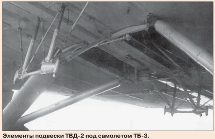 Но сама идея послужила толчком к разработке новой подвески на основе ПГ-12. В 1936 году в «Военной академии моторизации и механизации имени Сталина» под руководством начальника проектно-конструкторского сектора военинженера 3-го ранга Жозефа Яковлевича Котина создали новою подвеску для крепления Т-37А к бомбардировщику ТБ-3 под наименование ТВД. Да-да этот тот самый Котин, который чувствовал в разработке практически всех, если не всех тяжелых танков и самоходок СССР времен Второй мировой войны.