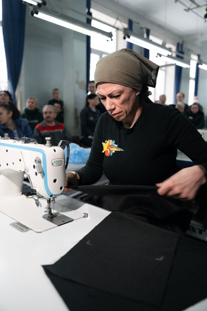 Но давайте уже пройдем в швейный цех, который превращен в концертный зал. Ивановская область — текстильный край не только на воле, но и в колониях. Для ИК-7 швейное производство вообще основной вид деятельности (отшивают изделия вещевого довольствия сотрудников УИС и спецконтингента, форменную, специальную и рабочую одежду). По этой причине сегодня тут и проходит конкурсе швейного мастерства «Красиво шить не запретишь»