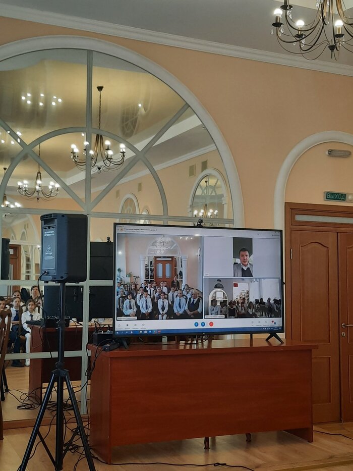 Галина Фомина рассказала историю дружбы двух школ, которая зародилась год назад на патриотическом форуме «В каждой семье свой Герой». В телемосте участвовали юнармейцы, активисты «Движения Первых», волонтеры и педагоги.