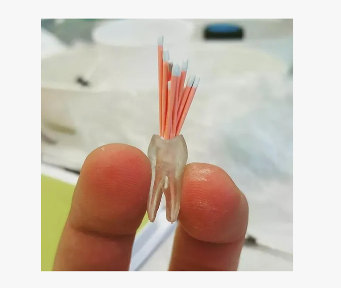 Удаляется нерв, какой то штукой, называется она пульпоэкстрактор, им словно щеткой проходятся, чтобы вычистить каналы.