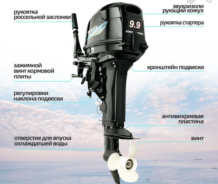 13. Портативный морской мотор 2-тактный, 9,9 л. c.