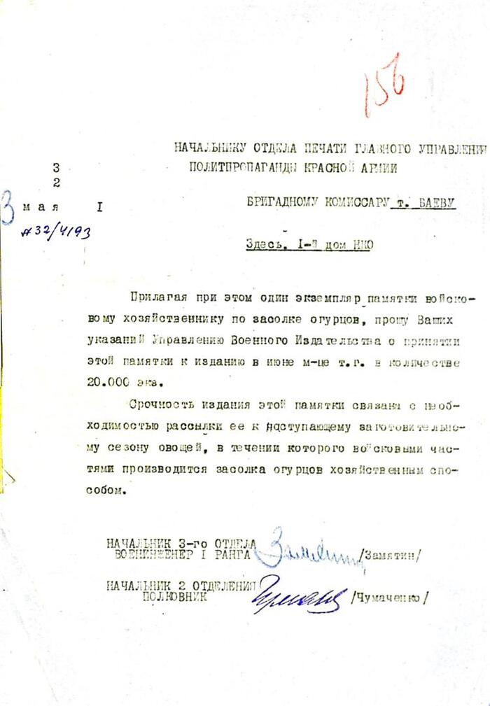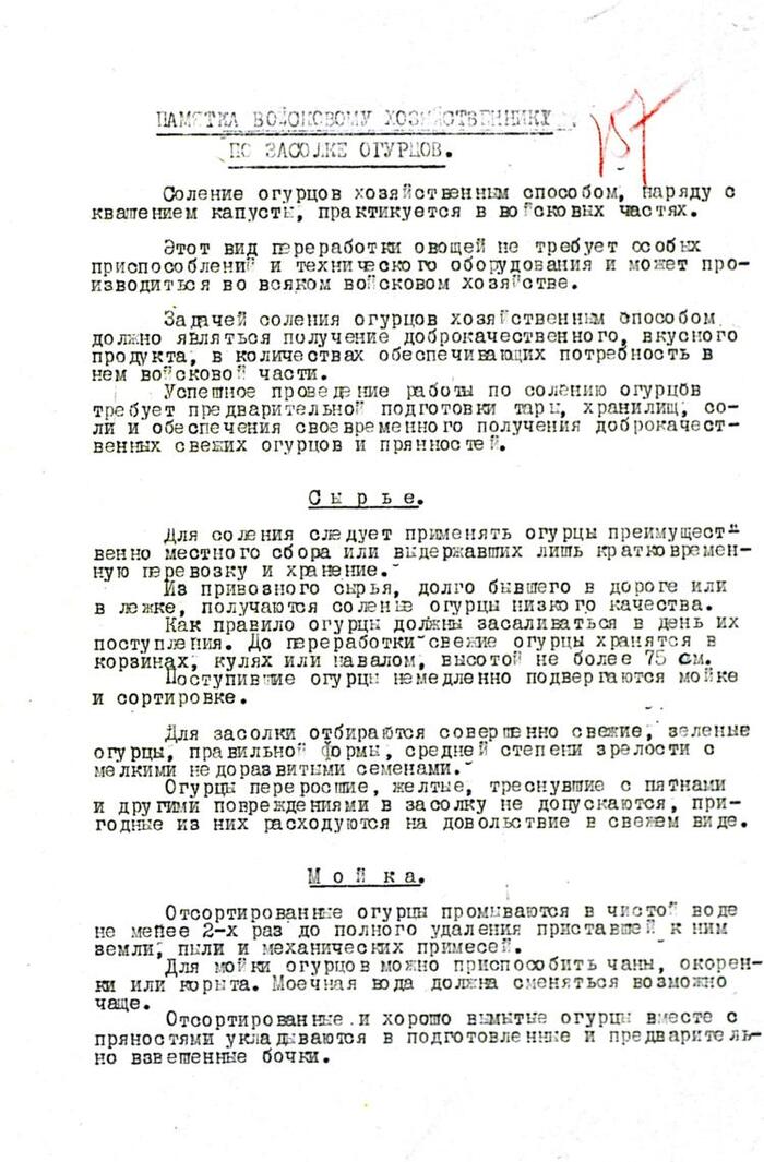 О памятке по засолке огурцов в войсковых хозяйствах Красной Армии в годы войны⁠⁠