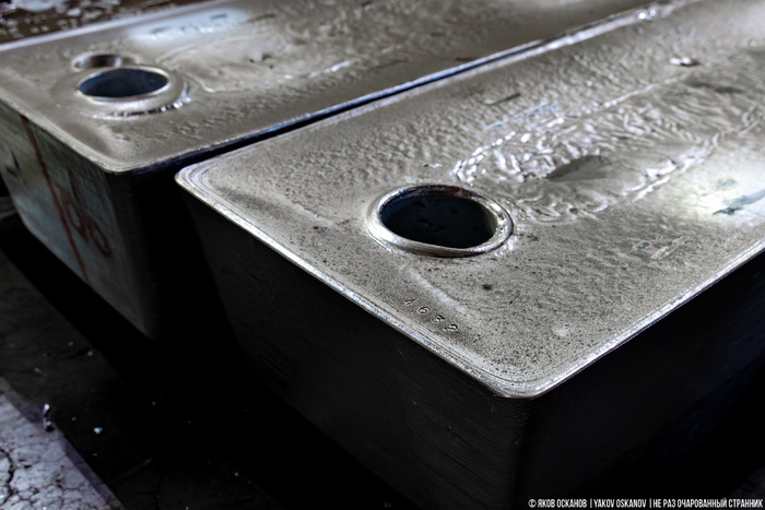 В ЛПЦ-11 производят листы покрытые защитными слоями. В основном это оцинкованная продукция. Слитки цинка на фото ниже. Это так называемая продукция высокого передела. Лучшее, что может происходить с металлом. Худшее - это когда страна продаёт на экспорт руду. Лучше, когда сама плавит. Ещё лучше, когда производит какие-то простые изделия. Но самое выгодное – создавать из ресурсов продукцию высокого передела.