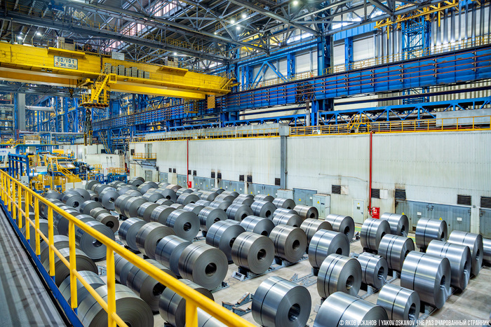 Я в общих чертах представлял себе холодный прокат как два здоровых вала, между которыми прокатывается металл, который сплющиваясь превращается в лист. Однако это оказался целый комплекс агрегатов размером с пятиэтажный многоподъездный дом.