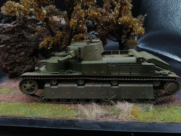 В идее такой танк имел кажущееся преимущество в следующем. Танки – очень нежные машины. У них очень небольшой моторесурс, их тяжелонагруженные механизмы быстро выходят из строя. Скажем, танки того времени уже через 50 часов работы требовали ремонта. Когда упоминавшийся тяжелый танк Т-35 в ходе испытательного пробега заставили пройти 2000 км, то при этом сменили три двигателя. Это касается танков как таковых и во всем мире. Танк – это машина не для поездок, а для боя. Поэтому вне боя ее стараются беречь. То есть, если требуется перевезти танки на большое расстояние, то их везут по железной дороге.