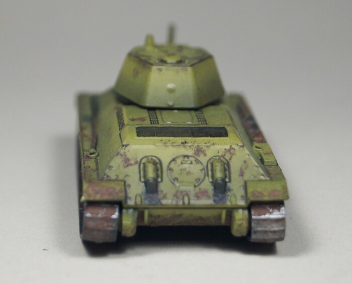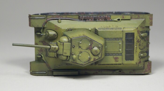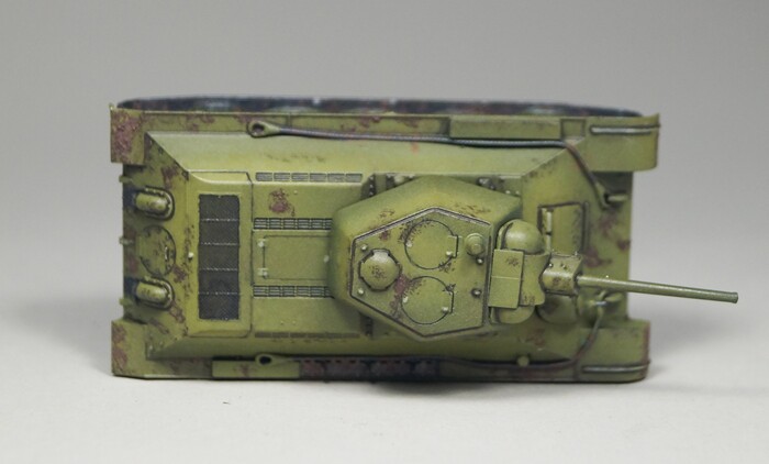 Тут ещё хотелось бы отметить сам набор от AFV Club. Из коробки планируется, что корпус и башня будут прозрачными, но я решил отгородиться от возни с прозрачными крупными деталями на первый раз и залил всё в русский зелёный.
